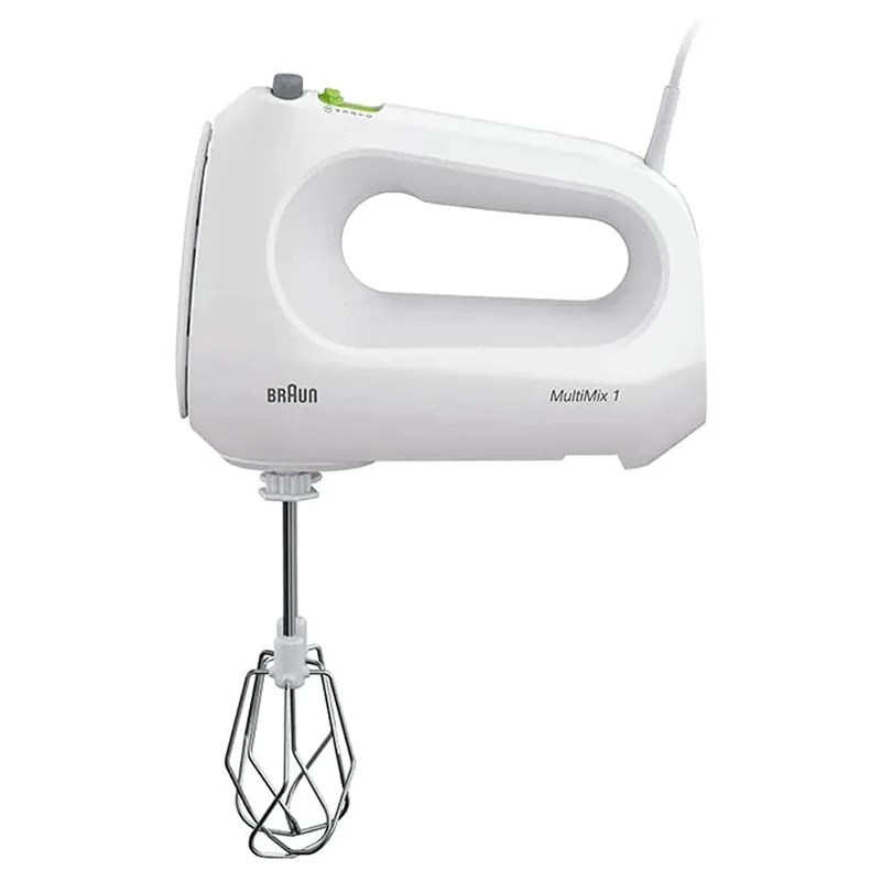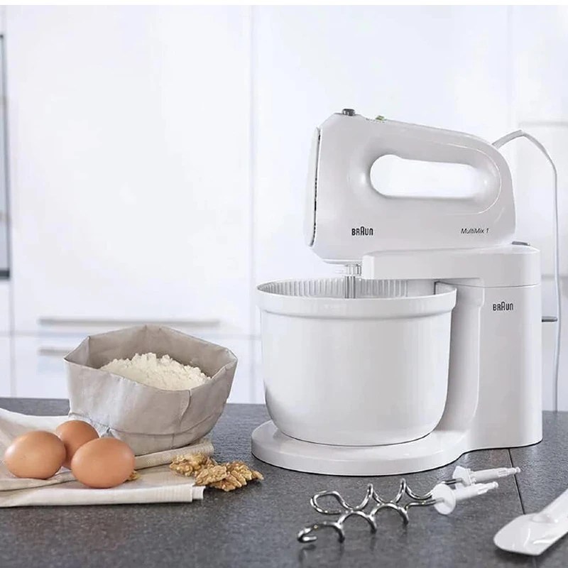 The Braun Multimix HM1070WH is a versatile 2-in-1 hand and stand mixer designed to streamline your baking and cooking tasks. Combining the functionality of both a hand mixer and a stand mixer, this appliance offers flexibility and convenience for a wide range of culinary applications.