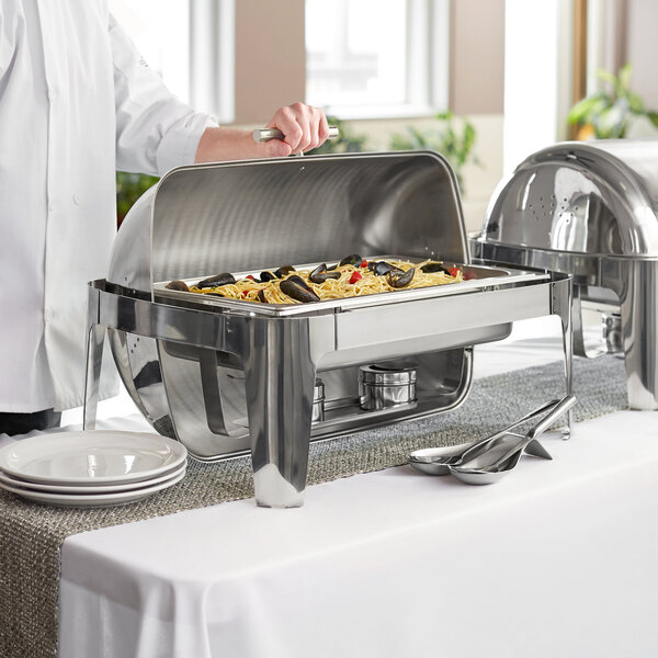 Acopa Supreme 8 Qt. Full Size Chrome Accent Roll Top Chafer