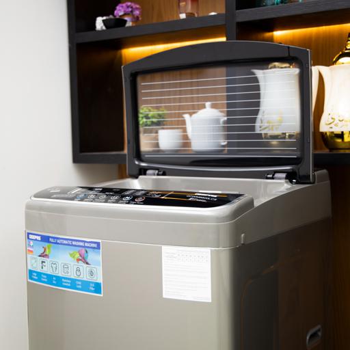 Geepas 420W Fully Automatic Top Loader Washing Machine 8kg – Gentle Fabric Care, Fuzzy Logic, Anti Vibration & Noise, Child Lock, Led Display, Stainless Steel Drum