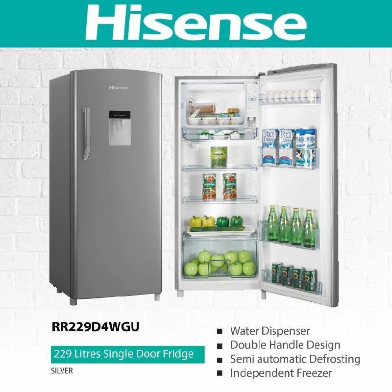 Hisense 229L Single Door Fridge has a Semi-auto defrost Cool fresh room Low voltage start Mechanical control with adjustable thermostat Reversible door Broad climate design Four star freezer compartment Environment-friendly technology