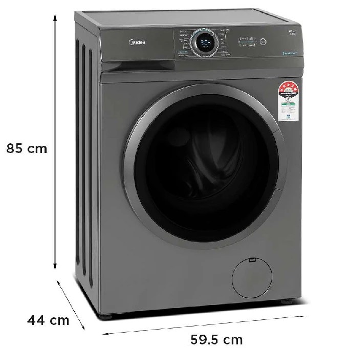 Compact Design. Powerful Performance. Efficient Cleaning. Midea 6KG Front Load Washing Machine with Lunar Dial, 1000 RPM, 15 Programs, Fully Automatic Washer, Digital LED Display, Child Lock, Mute Function, 90° Hygiene, 5 Years Motor Warranty, MF100W60WGCC