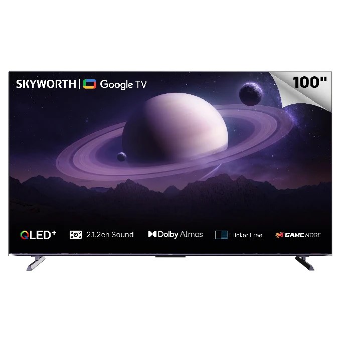 The Skyworth 100A5D Pro redefines home entertainment with its massive 100-inch 4K UHD QLED Mini LED display, delivering breathtaking visuals and immersive sound. Featuring Quantum Dot technology for ultra-vivid colors and Mini LED backlighting for exceptional brightness and contrast, this premium Google Smart TV ensures every scene is stunningly lifelike. Buy it from dombelo.com today, With Google TV, you can explore endless streaming options, control your TV hands-free via Google Assistant, and enjoy cutting-edge HDR formats like Dolby Vision IQ and HDR10+. Perfect for movie lovers, gamers, and sports fans seeking a cinematic viewing experience at home.