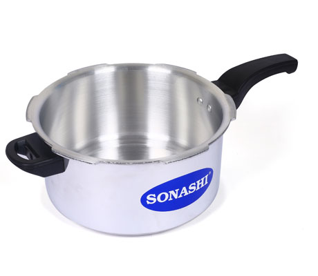 - Specifications: The Sonashi 3L pressure cooker boasts an aesthetic mirror polish finish and is made out of made from virgin aluminium. It has controlled GRS that ensures maximum safety throughout.