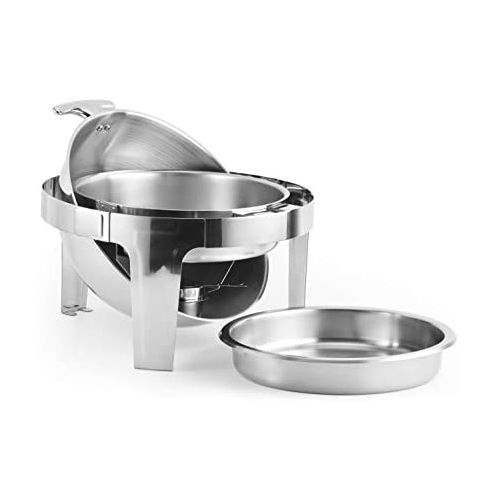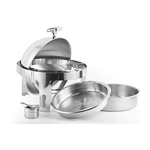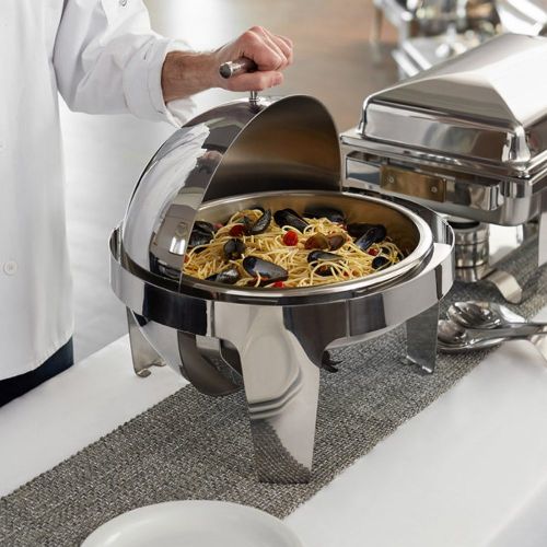 6L Commercial Stainless Steel Round Chafing Dish Roll Top Food Buffet Warmer- Silver