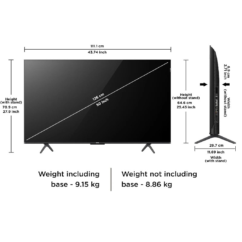 - Screen Size: 50 Inches (125 cm)